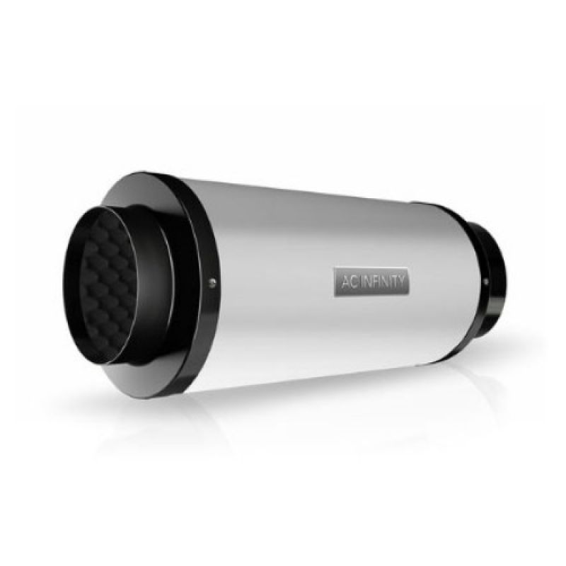 A ventilation ducting tool designed to dampen or reduce noise coming from airflow in grow tent or server closet ventilation systems. It utilizes high-grade neoprene foam crafted in a wave crest pattern that diminishes sound wave movement, reducing noise pollution by up to 50%. The egg crate foam muffles sound vibration while allowing maximum airflow passthrough for both intake and exhaust configurations. Both aluminum flange openings also assist in absorbing sound waves from vibrations, seamlessly fitting over your inline duct fan’s flange. Each silencer is built with a solid galvanized steel body that is corrosion-resistant and can withstand extreme temperature changes.